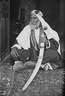 During the British Mandate period between 1920 and 1947, the overall chief of the al-Hanajira and one of the influential tribal chiefs in the Negev was Sheikh Freih Farhan Abu Middein. He served with the British Army during World War I,[7] and after the Mandate's establishment, he was appointed to the Tribal Court and the Advisory Council of the High Commissioner. In the early 1920s he became the mayor of Beersheba, his place of residence, and in 1922 became a member of the Legislative Council. The chief of the Nuseirat during this period was Sheikh Aaysh Farhan al-Msaddar, who was later succeeded by Sheikh Freih al-Msaddar in 1940.[8]