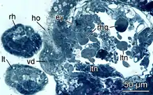 A microphoto of Hancock's organ (ho) of a sea slug Pseudunela marteli.
