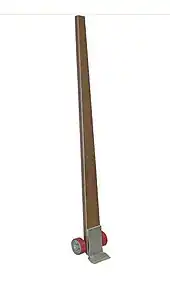 A piano tilter is a type of hand truck for moving an upright piano without damaging it.[4] Unlike a traditional dolly, which pivots around a smaller wheel or point, the piano tilter has large curved sections to gently tilt an upright piano until it is lying flat on its back.