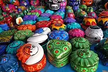 The paintings have become a characteristic of the state's handcraft tradition.[4] Painters have been commissioned to create murals both in Mexico and abroad. and a number have taken the work to canvas, but still mostly sold in tourist markets.[5][3][7]