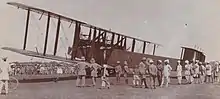 The same aircraft played a pivotal role in ending the Third Anglo-Afghan War. On 25 May 1919, flying from Risalpur piloted by Captain Halley and with Lt E. Villiers as observer, the V/1500 reached Kabul in three hours.[7] Of its payload of four 112 lb (51 kg) bombs on improvised bomb racks removed from B.E.2cs and 16 20 lb (10 kg) bombs carried in the fuselage and dropped by hand, four bombs hit the royal palace.[8] Although the bombing did little physical damage, it had a great psychological impact on the citizens - the ladies of the royal harem rushed onto the streets in terror, causing great scandal. A few days later King Amanullah sued for peace, bringing an end to the war after less than one month of hostilities.[8] J1936 ended its life being consumed by termites.[8]