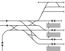 The station consists of one ground-level side platform and two island platforms, serving a total of four terminating tracks.[2]