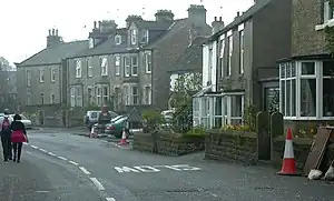 A street in Cotherstone, photographed in 2005, with Hannah's retirement cottage seen in the background (third from the right)