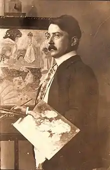 ![]() Hanns Diehl at his easel, ca. 1910 | |