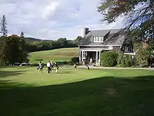 The historic clubhouse at Hanover Country Club reflects a unique New England tradition. Known for its charm and rural feel, it sells a selection of golf equipment and features a recently renovated restaurant. The restaurant's name of "Colonel Bogey's" refers to the Colonel Bogey March. Art professor Homer Eaton Keyes designed the shingled Arts & Crafts-style clubhouse around 1915 as a remodeling of the club's earlier Golf Barn. The Country Club expects to build a new and less isolated clubhouse closer to Lyme Road in the future.
