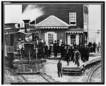 In April 1861, during the opening months of the American Civil War, Hanover Junction became a frequent gathering point for Union Army soldiers from the Commonwealth of Pennsylvania for transportation to and from points south, where they were stationed to protect the nation's capital city, Washington, D.C., and other sites that were endangered by advancing Confederate States Army troops.[6] As the war widened, train traffic expanded through Hanover Junction as horses and supplies were transported south with Union soldiers in greater and greater numbers.[7]