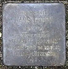- 1 2 3 4 Coppi Jnr, Hans. "Hans Coppi". Stolpersteine (in German). Berlin: Koordinierungsstelle Stolpersteine. Retrieved 4 January 2019.