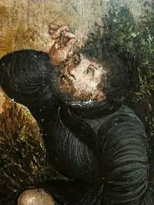Hans Krell is credited by Dieter Koepplin[4] as the author of a painting (Battle of Orsha) long associated with Lucas Cranach the Elder, painted around 1524–1530.[4] The painting, today displayed in the National Museum in Warsaw, depicts the battle which was fought on 8 September 1514 between the allied forces of the Grand Duchy of Lithuania and the Kingdom of Poland on one side and the army of the Grand Duchy of Moscow on the other. According to specialists, the author must have taken part in the battle himself due to his high knowledge on the subject.[4] Krell's connections with the Jagiellonian dynasty patrons (including king of Hungary) and rulers of Prussia makes this attribution probable. The author of the painting portraited himself in the painting observing the battle and gazing upwards through intertwined fingers.