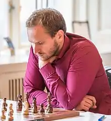 He won the Swedish Junior Chess Championship in 2002.[2] In 2010 he won the Lithuanian University of Agriculture Cup in Kaunas[3] and tied for 3rd–6th with Sarunas Sulskis, Tiger Hillarp Persson and Kaido Kulaots at Borup.[4] In 2012, he came second in the Group C of the Tata Steel Chess Tournament in Wijk aan Zee,[5] and shared first place with Slavko Cicak and Emanuel Berg at the Västerås Open.[6] He played for Sweden in the European Team Chess Championships of 2005 (in team 3), 2011 and 2013[7]