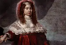 A portrait of him, painted by Karel van Mander III,[2] hangs at the Rosenborg Castle.[7] At the Frederiksborg National Museum [Frederiksborgmuseet], there is a large painting that shows a couple dancing, in clothes from the medieval times, at the Vernø Monastery (a medieval monastery in Rygge, Norway, southeast of Oslo). The models for this couple are believed to be Hans Ulrik Gyldenløve and his wife, Regitze.