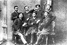 Harada Naojirō was born in the Koishikawa area of Edo (modern Tokyo) on 12 October 1863.[lower-alpha 1] He was the second son of Ai and Harada Ichidō. Ichidō worked for the military government at the Bansho Shirabesho, where foreign books were studied and translated. He wanted his son to learn French, and to this end had Naojirō enrolled at the Osaka Kaisei School in 1870 and at the Tokyo School of Foreign Languages in 1873, from where he graduated in 1881. That August he married Ōkubo Sada.[lower-alpha 2] From the age of eleven Harada began studying yōga, or Western-style painting under Yamazaki Nariaki, and from 20 under Takahashi Yuichi, who at the time was the most prominent yōga painter in Japan.