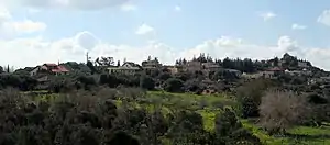Hararit is located on the crest of Mount Netofa in the Lower Galilee. It was established in 1980 as part of a government-sponsored project initiated by Labor party member Nissim Zvili.[3] It was part of a plan to bring more Jewish residents to the Galilee area.[3] Initially it was supposed to be settled by a group of Rafael employees, but they rejected it, as it was too far from their workplace, and eventually it was settled by Shahaf ("Seagull"), a group of people dedicated to the principles of Transcendental Meditation (TM).[4][5] By the year 2000 the TM group was reported to be only half of its original population.[6] In 2008, there were 95 families living in Hararit.[7]