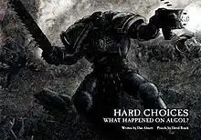 Hard Choices 'What happened on Algol?' is a 32-page graphic novella prequel to Ultramarines: A Warhammer 40,000 Movie[1] written by Dan Abnett, released as part of the Special Edition DVD on 29 November 2010. Hard Choices is a military science fiction story set in the Warhammer 40,000 universe, the protagonists being Space Marines from the Ultramarines[2] Chapter.