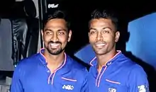 Hardik Himanshu Pandya (born 11 October 1993) is an Indian cricketer who is the current vice-captain of the Indian cricket team in limited overs format. He is the captain of Mumbai Indians franchise in IPL. A batting all-rounder who can also bowl right-arm fast-medium deliveries, Pandya has represented India in all 3 formats. He is considered to be one of the best all-rounders in world cricket. He currently plays for the Baroda cricket team in domestic cricket and the Mumbai Indians whom he captains in the Indian Premier League (IPL).His elder brother Krunal Pandya is also a professional cricketer.