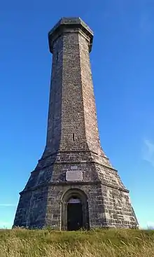 The Hardy Monument (sometimes referred to as Hardy's Monument) [1][2] is a 72-foot-high (22 m) monument on the summit of Black Down in Dorset, erected in 1844[3] by public subscription in memory of Vice Admiral Sir Thomas Hardy, flag captain of Admiral Lord Nelson at the Battle of Trafalgar.