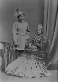 In July 1883, Kunwar's first wife died, subsequently, Devi was promoted to the position of Bada Maharani (lit. Senior Maharani).[4][5] As Bada Maharani, she held substantial power in the Nepal Durbar.[4] In 1882, Jagat Jung Rana, the eldest son of Jung Bahadur Rana, led an attempted coup d'état twice against both the Prime Minister Ranodip Singh and the Army Chief Dhir Shumsher, as a result of this, he was removed from the roles of the succession of Ranas and was exiled to British India.[6] Devi was sympathetic to Jung Bahadur's sons,[7] as a result, she invited Jagat back to Kathmandu, and asked Ranodip Singh to make him the Commander-In-Chief of the Nepalese Army.[4][8][9] Her interference in state affairs resulted in a political crisis and it eventually led to the 1885 Nepal coup d'état.[2][10]