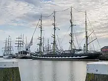 Harlingen's port remained significant in the 19th century. Already in the 1820s, the Amsterdamsche Stoomboot Maatschappij made a stop at Harlingen part of her Amsterdam-Hamburg line. While this was later omitted, Harlingen would retain a steam powered line to Amsterdam. Steam powered ships opened some new opportunities, especially for the export of agricultural products to England. By 1846 this was very important for the Frisian economy and led to severe competition between the shipping lines.[13] After some time, the St. Petersburg Steamship Company came to dominate the export to London. The export of life cattle was much easier with steam boats and became important because cattle had to be slaughtered near the place of consumpton. By 1870 the General Steam Navigation Company (GSNC) also had a regular cattle line between London and Harlingen.[14] In April 1876 GSNC acquired the boats of the Petersburg Steamship Company and thus elimated this competitor.[15] In 1896 the route to Harlingen was one of GSNC's most profitable lines.[16] In the late 1890s, the GSNC ships on this line got cooling facilities.[17] This allowed the export of the famous Frisian dairy products, especially butter with even less damage during transport.