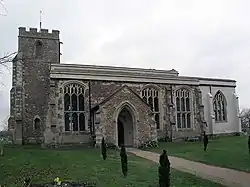 The parish church of the Assumption of the Blessed Virgin Mary was built to replace an earlier building in the late 14th century. It comprises a chancel with north vestry, aisled and clerestoried nave with north and south porches, and west tower. Some 14th and 15th-century glass remains and there are 16th-century stalls. The tower contains three bells.[3]