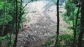 A photo showing the damage caused by road work in Harmankaya Nature Park.