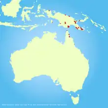 In Australia the range of this species was originally from the top of Cape York to near Rossville, but after extensive planting throughout the city of Cairns it has become naturalised in the areas around the city.[10]