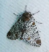 Harrisimemna trisignata, or Harris's three spot, is a moth of the family Noctuidae. The species was first described by Francis Walker in 1856.[1][2] It is found in North America from Ontario, Quebec, New Brunswick, Nova Scotia, Newfoundland and Labrador, Alberta and Saskatchewan, south to Arizona. In the United States it has been recorded in Maryland, Pennsylvania, Wisconsin, Georgia, Illinois, Indiana, Iowa, New York, Ohio, Oklahoma, Tennessee, Texas and Virginia.
