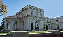 In July 1911, Coulby began construction of a luxurious residence at 28730 Ridge Road in Wickliffe, Ohio. The well-known local architect Frederic William Striebinger designed the Renaissance Revival structure, which sat on 54 acres (220,000 m2) of land and was built by Wm. T. Paul's Sons. The $1 million, 16-room, two-story mansion had seven fireplaces (with mantels carved from Italian marble), and a skylight over the entrance designed by Louis Comfort Tiffany. The exterior was covered in an unusual terra cotta imported from Italy and glazed bright white. High Palladian windows admitted extensive natural light to every room on the ground floor. The estate contained formal gardens, a pond, a cow barn, a park, and a gatehouse (now the Wickliffe Police headquarters). Coulby kept the trees on the north side of his property trimmed down so he could see ships sailing on Lake Erie from the master bedroom on the second floor. Finished in 1912, the mansion, called Coulallenby (a portmanteau of "Coulby" and "Allen"), is considered a superb example of early 20th century Renaissance Revival architecture,[79][80] and is listed in the National Register of Historic Places.