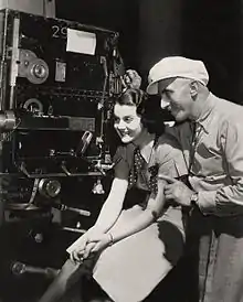 ![]() With Olympe Bradna while shooting The Last Train from Madrid | |