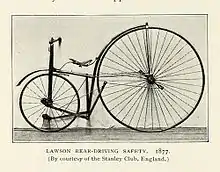In 1873 the family moved to Brighton and Lawson designed several types of bicycle. His efforts were described as the "first authentic design of safety bicycle employing chain-drive to the rear wheel which was actually made" and has been ranked alongside John Kemp Starley as an inventor of the modern bicycle.[3][4][5]