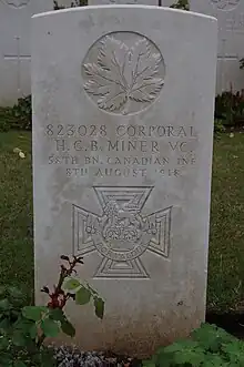 Harry Garnet Bedford Miner VC (24 June 1891 – 8 August 1918) was a soldier in the Canadian Expeditionary Force during the First World War and posthumous recipient of the Victoria Cross, the highest and most prestigious award for gallantry "in the face of the enemy" that can be awarded to British and Commonwealth forces. He earned the award for events that occurred during the Battle of Amiens in August 1918. There are two plaques in his memory in his hometown, Cedar Springs, Ontario and his medals are displayed in a local museum.