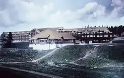 Reamer, by now a close family friend, accompanied Harry and Adelaide Child on a European tour in 1909. The next year he designed a new Canyon Hotel for Child, built on a scale far greater than any previous park building. The Canyon Hotel quickly became the premier hotel in the park.[7] In 1911 Child added the Yellowstone Park Boat Company to his portfolio, offering excursions on Yellowstone Lake.[8] However, Child gave up a portion of his share of the Wylie Permanent Camping Company to friend and competitor F. Jay Haynes, who operated photography concessions in the park, and who held the Union Pacific Railroad's hotel concession in the park. Until this time the Union Pacific concession was largely theoretical, but with the extension of rail service to West Yellowstone, Montana, the UP and Haynes became a threat to Child's core business. The sale effectively bought Haynes' cooperation as a competitor.[9] The records for the Yellowstone Park Company from 1925 to 1967 are held at Montana State University's Archives and Special Collections.
