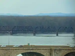 The Hartford–East Hartford railroad bridge is a 5-span truss bridge connecting Hartford and East Hartford, Connecticut, over the Connecticut River. The bridge is 1,240 feet in length and 18.3 feet in width and was built ca. 1873 by the Hartford, Providence and Fishkill Railroad. The bridge is currently owned and maintained by the Connecticut Southern Railroad and carries freight traffic.