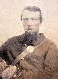 Hartshorn (pronounced HARTS-hurn, though New Englanders in this region usually pronounce it "HAHTZ-hun") was born on July 14, 1840, to Susannah Putnam Hartshorn (1816–1903) and her husband, John Hartshorn (1811–1878), a deacon in the Baptist Church. The younger Hartshorn grew up in South Lyndeborough in a house at the corner of what today is Citizens' Hall Road and Forest Road/Route 31. On May 20, 1861, he enlisted in the 2nd New Hampshire Volunteer Regiment, infantry division, and served as part of the Army of the Potomac in Virginia. On May 5, 1862, Hartshorn was killed during the Battle of Williamsburg in Virginia, becoming the second Lyndeborough resident to die in the Civil War.[4] Harvey Holt, the namesake for the GAR post, was the town's—and according to Lyndeborough's official town history, state's—first Civil War fatality, having perished during the First Battle of Bull Run.[5]