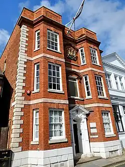 The extant medieval structures are largely private homes. The house featured in the image of Kings Head St to the left is unique in the town and is an example of a sailmaker's house, thought to have been built circa 1600. Notable public buildings include the parish church of St. Nicholas (1821)[12] in a restrained Gothic style, with many original furnishings, including a somewhat altered organ in the west end gallery. There is also the Harwich Guildhall of 1769, the only Grade I listed building in Harwich.[13]