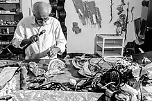 From the early ‘80s, Sharif began creating assemblages from cheap, mass-produced materials or items sourced from the UAE’s markets. With these heaps – often large in scale – Sharif was handing back as artwork the surplus of a recently and rapidly-industrialised UAE. Similarly, "as illustrations of meaningless [sic], taking Duchampian philosophy to heart, they were crafted from commonplace materials, cut, bound or tied together with rope or wire, and thus stripped of their original function."[6] His subsequent assemblages have incorporated coir, rope, copper wire, readymade domestic products, a crutch, newspapers dipped in glue and papier-mache.