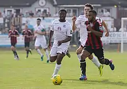 In April 2015 Dave Walters stepped down as club chairman, selling his majority shares to Dave Ormerod.[28] A new board was quickly appointed and Garry Wilson was appointed manager for 2015–16,[29] the club had ambitions to challenge for promotion, however the team ended up in a disappointing seventh place and Wilson resigned. Darren Hare signed a two-year deal to become manager from 2016–17 with Steven Watt as his assistant. Players with Football League experience such as Lenny Pidgeley, Matt Bodkin and Frannie Collin, who scored a record equalling 32 goals, joined the club. After a fifth-place finish in the league, the club lost in the play-off semi-finals to Dorking Wanderers and Hare departed as manager shortly after.[30]