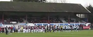 In 1985 the club moved back to the Pilot Field,[13] which since 1948 had seen the construction of two new stands behind one goal, floodlights and additional catering facilities. A new clubhouse was constructed near the main entrance in 1998 and further extended the following year, the "Cole Warren" stand was erected in 2005 at the far end of the ground and providing covered standing and seating on three sides of the ground.[35]