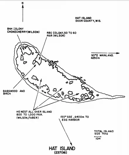 - Figure 15. Hat Island, in Colonial birds nesting on man-made and natural sites in the U.S. Great Lakes by William C. Scharf, Northwestern Michigan College, Traverse City, Michigan, published by Vicksburg, MS: Waterways Experiment Station, 1978