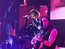 Rihanna occasionally performed "Hate That I Love You" at award ceremonies and concert tours. On November 18, 2007, Rihanna performed a medley consisting of "Umbrella" and "Hate That I Love You" at the American Music Awards of 2007, held at the Nokia Theater in Los Angeles, California.[43] For the performance of "Hate That I Love You", Ne-Yo accompanied her on the stage. During the ceremony, Rihanna also won the award for Favorite Female Artist and the R&B/Soul Category.[44] In late 2007, Rihanna also embarked on her first worldwide concert tour, the Good Girl Gone Bad Tour (2007–09). "Hate That I Love You" was the eleventh song on the set list for the tour.[45] Her performance in Manchester was released in the UK through iTunes[46] and is featured on the Good Girl Gone Bad Live DVD.[47] In 2008, Rihanna performed the Spanglish version of the song with David Bisbal, at the sixth series of the Spanish talent show, Operación Triunfo.[48]