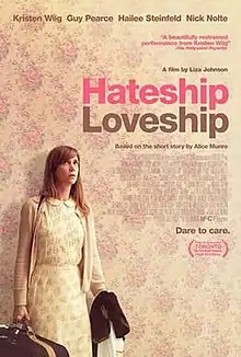 Hateship, Loveship is a 2013 American drama film directed by Liza Johnson and written by Mark Poirier, based on the 2001 short story "Hateship, Friendship, Courtship, Loveship, Marriage" by Alice Munro. The film stars Kristen Wiig, Hailee Steinfeld, Guy Pearce, Jennifer Jason Leigh and Nick Nolte. It premiered at the 2013 Toronto International Film Festival on September 6, 2013.[3]