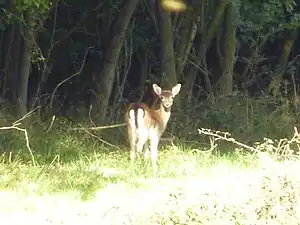 Given the wide range of unspoilt habitats in the Forest, it is not surprising that it has much wildlife, both plant and animal.[17] Amongst mammals to be seen at the Forest are fallow deer, muntjac deer, fox, grey squirrel, rabbit, weasel and hedgehog. There are badger setts, but badgers, being nocturnal are rarely seen. Two herds of Red Poll cattle graze the plains in the traditional manner. Sheep are used as 'conservation grazers' for areas that have been cleared of scrub. The breeds being used are Speckled Faced Beulah, Wiltshire Horn and Manx Loaghtan.