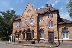 At the time of National Socialism, trains arrived on platform 4 with extra carriages with children to be "dealt with" under the euthanasia program. These were transferred to the "Children's Department" (Kinderfachabteilung) of the nearby Landesheilanstand Eichberg (Eichberg mental hospital, now Vitos Rheingau, near Eberbach Abbey) to be used for "scientific purposes" and mostly murdered. Adult patients also came to the Eichberg hospital via Hattenheim station, where they were either killed or transferred to the Hadamar Euthanasia Centre.[4][5]