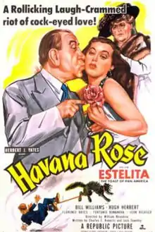 Havana Rose is a 1951 American musical comedy film directed by William Beaudine and starring Estelita Rodriguez, Bill Williams and Hugh Herbert.[2] It was one of a number of American films set in Havana during the era.[3]