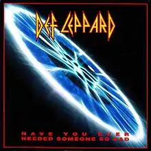 "Have You Ever Needed Someone So Bad" is a song by English hard rock band Def Leppard from their fifth studio album, Adrenalize (1992). In the United States, the song reached number seven on the Album Rock Tracks charts and number 12 on the Billboard Hot 100, making the song the most successful single from the album in the US. The Acoustic Hippies from Hell, credited on the B-side tracks, was the name used by Def Leppard and the Hothouse Flowers performing together. The song was performed extensively during the Adrenalize and Slang tours but rarely after, most recently being done acoustically during the band's 2019 Vegas residency, and the 2022 Stadium Tour.