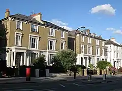 The Queen's Crescent NW5 area to the east of the hill is home to Queen's Crescent Market. If divided into nine equal sections the north-east to south-east third has most of the high density council housing centred on sports facilities at the 5-acre (2.0 ha) Talacre Gardens which adjoins Kentish Town West railway station[2] In the west a notable estate of partial social blocks is the Maitland Park Estate, Maitland Park Villas. Grand, classical architecture long roads are from west to east: Eton Road, Adelaide Road, Prince of Wales Road, Parkhill Road, Maitland Park Road, Queens Crescent and the east of Marsden Street and Malden Road.