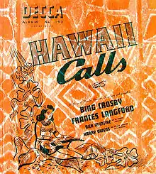 Hawaii Calls is a compilation album of phonograph records put together by Decca Records in 1941 featuring Decca's best Hawaiian music.[1] These previously issued songs were featured on a 5-disc, 78 rpm album set, Decca Album No. 193. Harry Owens is the main performer for Disc 1, as Bing Crosby is for Disc 2 and Frances Langford backed by Dick McIntire are for Discs 3 and 4, while Dick McIntire is the main performer for Disc 5.