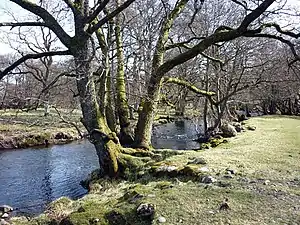 Below Burnbanks near the Haweswater Dam it is crossed by Naddle Old Bridge (a disused Grade II listed 18th-century road bridge)[1] and a little further downstream (at NY515161) by Park Bridge, a packhorse bridge.[2] Between these bridges the stream is followed by the Coast to Coast Walk.[3]