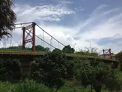 Hawkesworth Bridge is a one lane suspension bridge in San Ignacio, Belize. Built in 1949 and imported from Middlesbrough, England,[1] it crosses the Macal River linking San Ignacio to its sister-town Santa Elena. It is currently the only drivable suspension bridge in Belize. Work began in October 2012 on a new, larger bridge that will link Santa Elena and San Ignacio that will span 154 meters across the Macal River.[2]