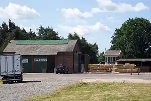 ![]() The goods shed (left) and signalbox (right) at Hawkhurst Station | |