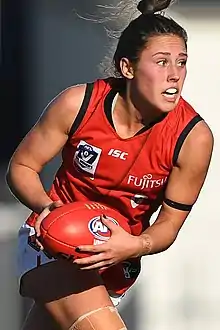 ![]() Bullas playing for Essendon's VFLW team in June 2019 | |||