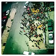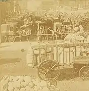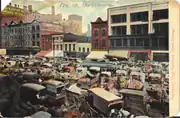 Haymarket Square[1] is a commercial area on the Near West Side[2] of Chicago at Randolph Street and Des Plaines Street[3] just east of Halsted Street,[4] known primarily for the protest and bombing that occurred on May 4, 1886.[5][6] It was a wide,[7] busy commercial food produce market[8][9] for much of the 19th and early 20th centuries. The square is a tourist destination,[10] and is often a rally point for various unions[11] and political groups and individuals.[12]